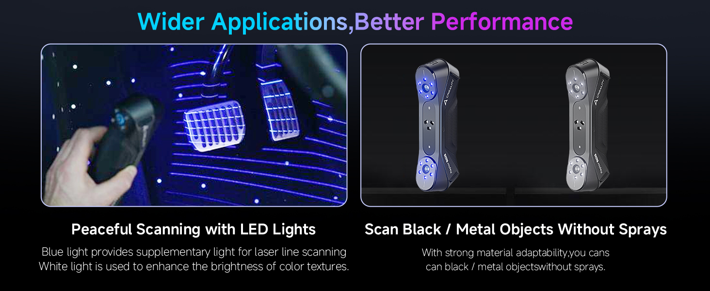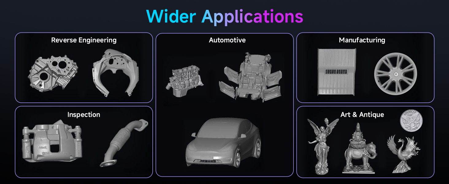 【Scan Black & Metal Without Spray】No pre-treatment required—Raptor Pro handles dark, shiny, and metallic surfaces effortlessly, making it a go-to tool for automotive parts, engineering tools, and industrial items.