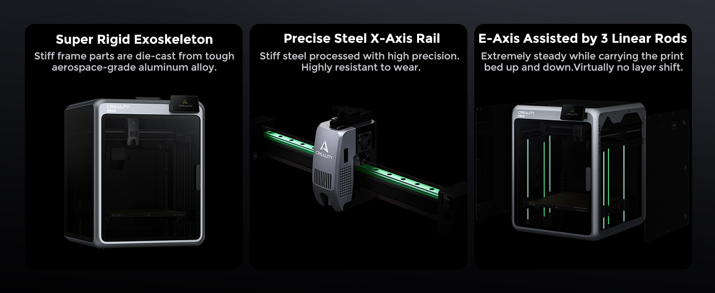 【Sturdy Matrix Frame for Enhanced Stability】 Built with an aerospace-grade aluminum alloy exoskeleton, the K2 Plus boasts a super sturdy frame for enhanced stability. The robust XYZ axis ensures precision and durability for all your printing needs.