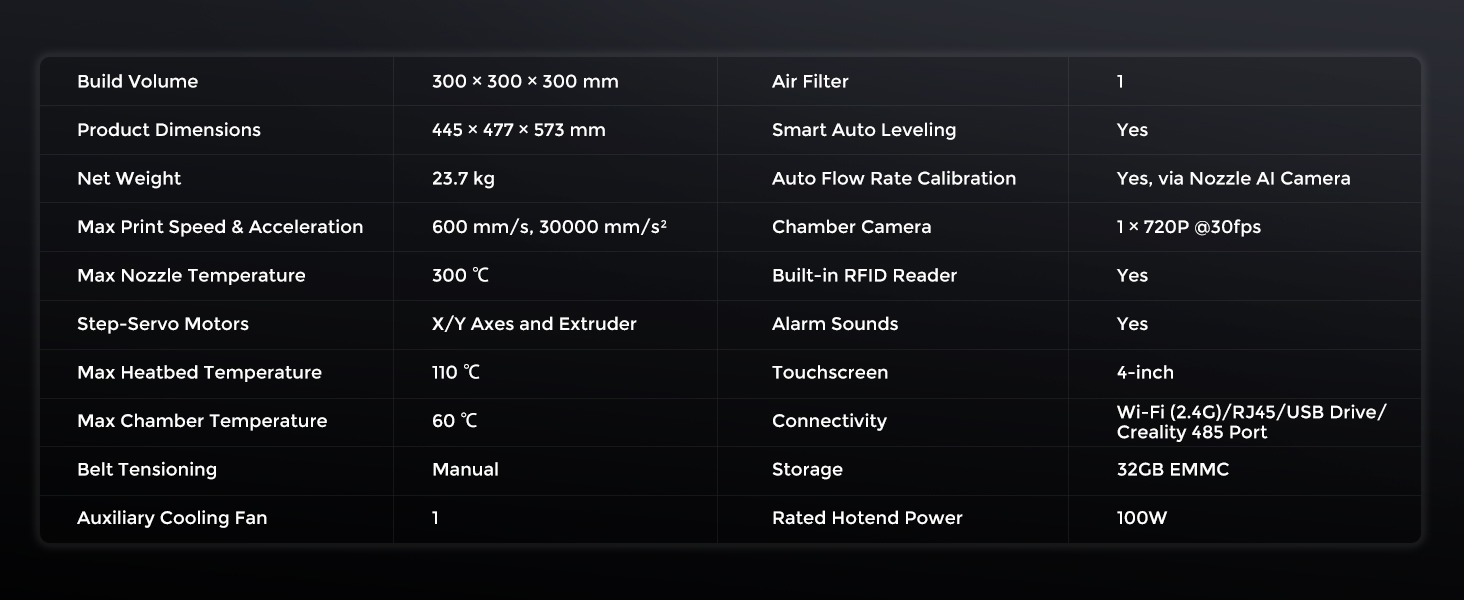 【Epic Print Speed & High Precision】 Experience incredible printing speeds of up to 600mm/s with precision as fine as 0.05mm. The K2 Plus is designed for rapid prototyping without compromising on quality, bringing your ideas to life faster.